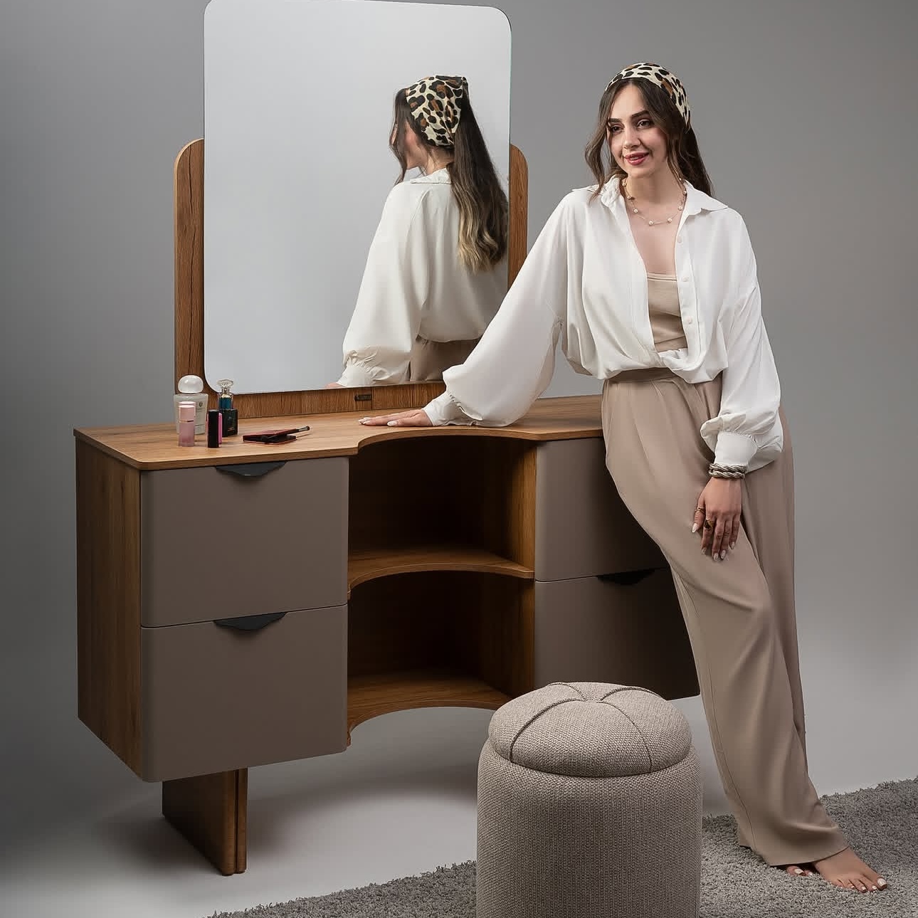 میز آرایش آوین یکی از محصولات زیبای شرکت هرواک و جز موجودی های مجموعه هرنو مبل می باشد. و مناسب برای چیدمان های مدرن و مینیمال می باشد.