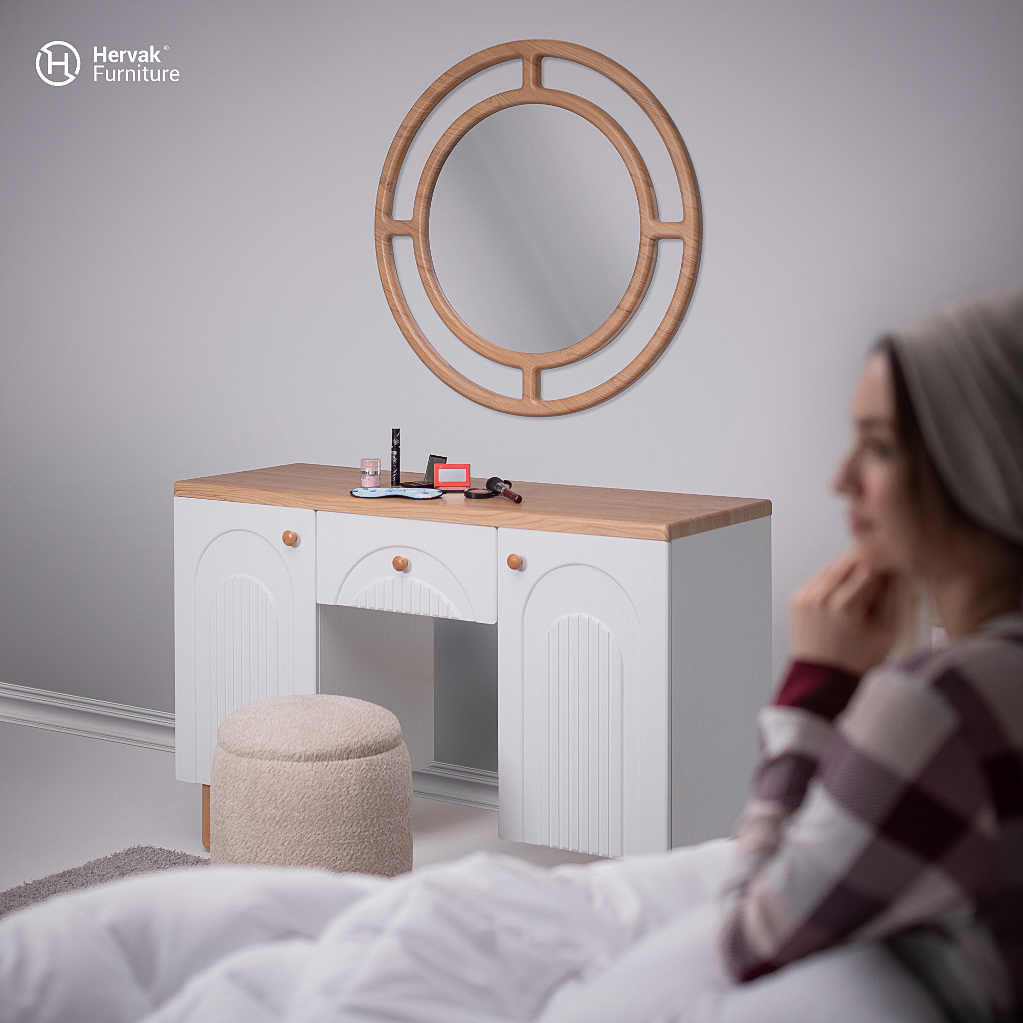 میز آرایش هدیکا یکی از محصولات زیبای شرکت هرواک و جز موجودی های مجموعه هرنو مبل می باشد. و مناسب برای چیدمان های مدرن و مینیمال می باشد.