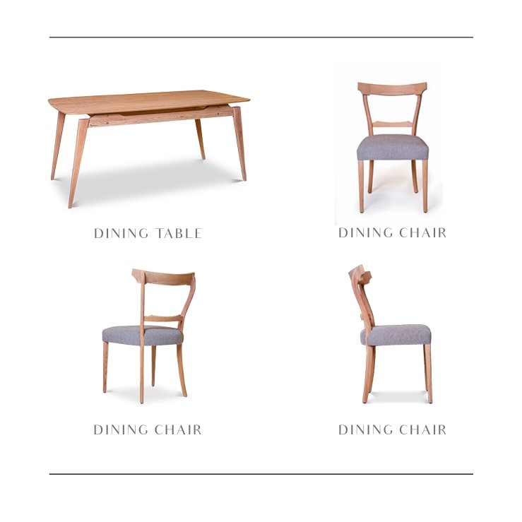 در ساخت اسکلت صندلی های این محصول از چوب نراد وارداتی روس استفاده شده که مقاوم ترین نوع چوب در ساختار اسکلت صندلی در صنعت مبلمان به حساب می آید. همچنین برای استحکام محصولات شرکت در قسمت پایه ها از چوب سوپر راش گرجستان استفاده کرده است. برای ساخت صفحه میز غذاخوری از چوب mdf با روکش چوب طبیعی استفاده شده است.
