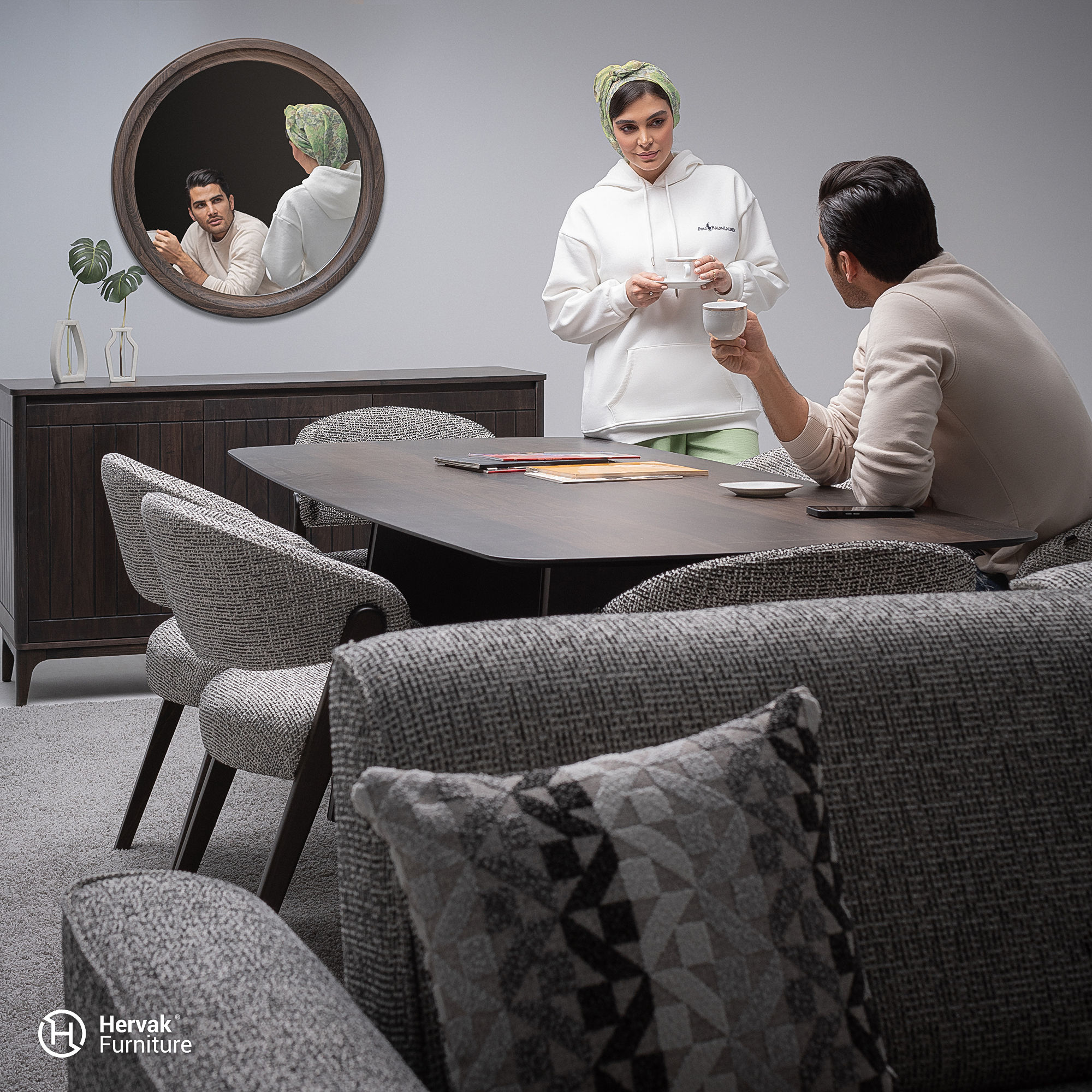 در ساخت اسکلت صندلی های این محصول از چوب نراد وارداتی روس استفاده شده که مقاوم ترین نوع چوب در ساختار اسکلت صندلی در صنعت مبلمان به حساب می آید. همچنین برای استحکام محصولات شرکت در قسمت پایه ها از چوب سوپر راش گرجستان استفاده کرده است. برای ساخت صفحه میز غذاخوری از چوب MDF با رنگ پوششی پلی اورتان استفاده شده است.