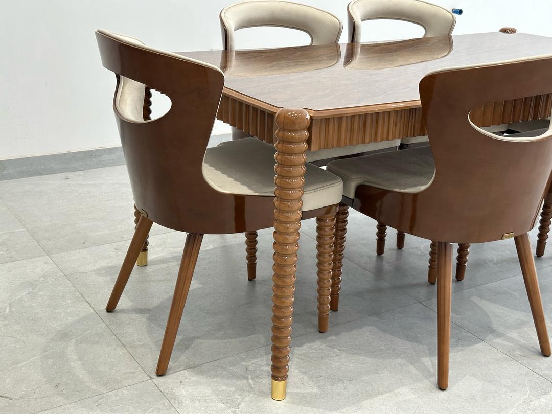 در ساخت اسکلت صندلی های این محصول از چوب نراد وارداتی روس استفاده شده که مقاوم ترین نوع چوب در ساختار اسکلت صندلی در صنعت مبلمان به حساب می آید. همچنین برای استحکام محصولات شرکت در قسمت پایه ها از چوب سوپر راش گرجستان استفاده کرده است. برای ساخت صفحه میز غذاخوری از چوب MDF با رنگ پوششی پلی یورتان استفاده شده است.